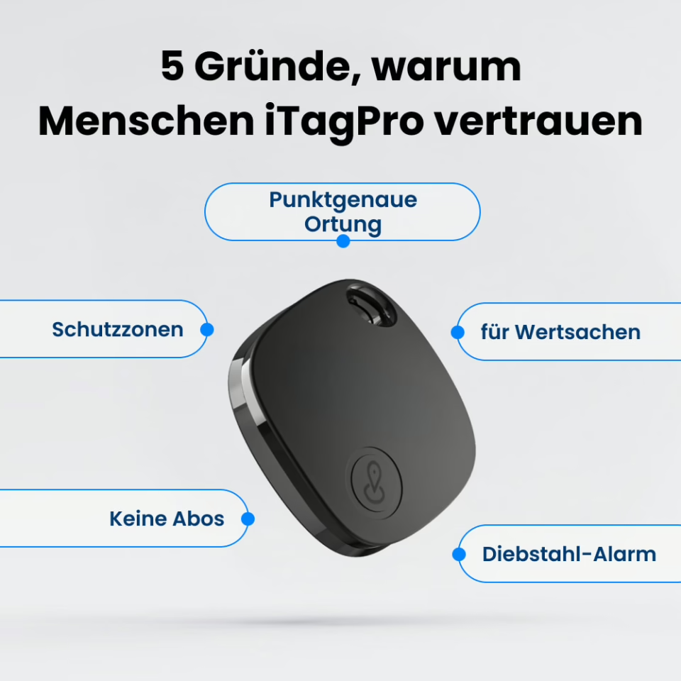iTagPro hilft Ihnen, Wertsachen in Echtzeit zu finden, zu sichern und zu verfolgen – mit GPS/Bluetooth, Geofencing-Warnungen und App-Steuerung. Bestellen Sie heute mit kostenlosem Versand und 30-Tage Geld-zurück-Garantie.